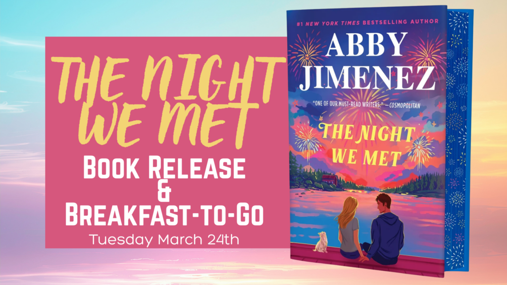 March 24th “The Night We Met” by Abby Jimenez Book Release & Breakfast-to-Go 7 to 10am
